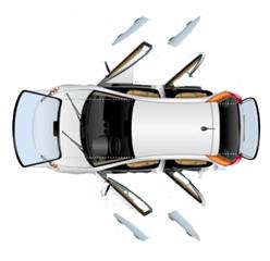 pare brise,vitre latérale, lunette arrière,toit panoramique.
